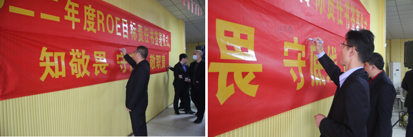 回首2021,我们充分而忙碌,展望2022,我们充满信心与期待。公司也对各事业部属达2022年度的各项指标,接下来就是签署2022年ROE指标责任状!目标责任书的签订,让每一位同仁对自己的目标越发清晰,也更明确了我们努力的偏向,让我们配合期待2022年!