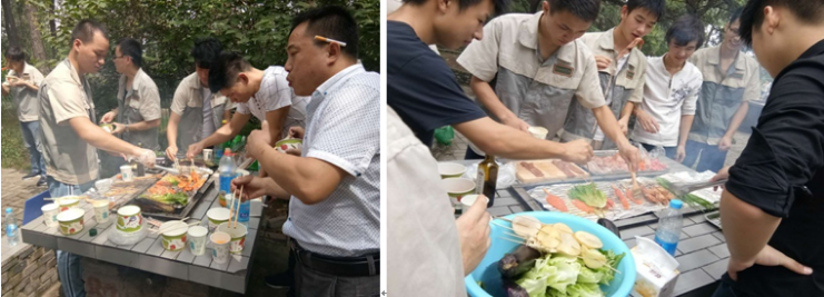 凭据此次运动的预先安排 10:00部分人员在园内烧烤点荟萃,组织趣味烧烤大比拼。各人开始分工起来,择菜的择菜,配料的配料,各司其职,各组大厨纷纷闪亮登场,一较高下,好不热闹……